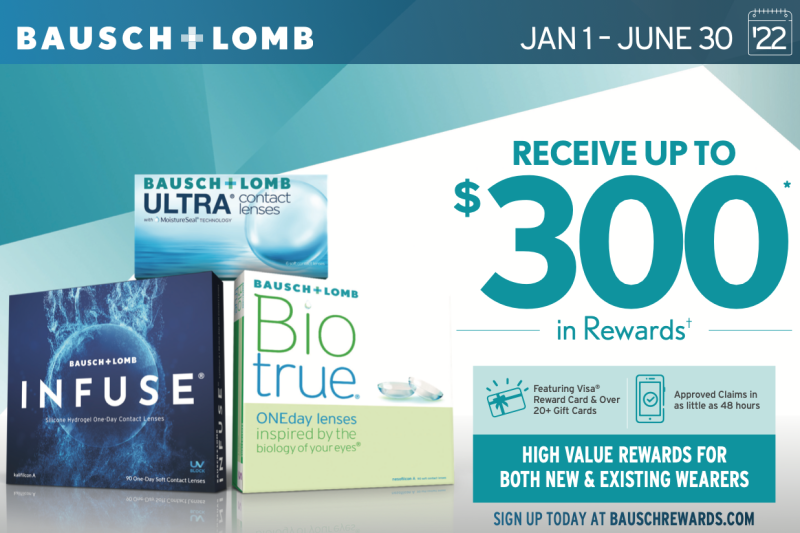 Act now: Receive up to $300 in rewards on Bausch + Lomb contact lens brands